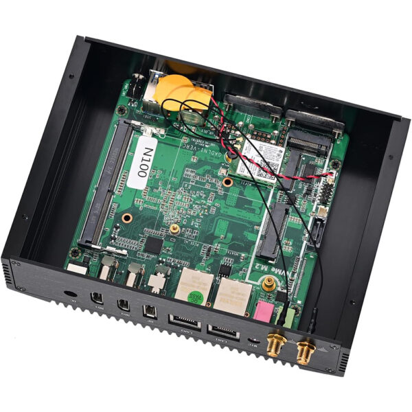 Industrial Aluminum Mini PC with Intel N100, 16GB DDR4, 3x Display, 2x 1G LAN, -10°C~60°C for Automation